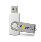USB iepakots baltā kartona kastītē ar lodziņu un logolenti. USB izm.: 5.5x1.5 cm. Logolentes dažādās krāsās.